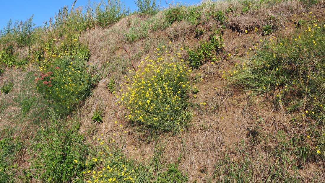 Ein Bestand von Diplotaxis tenuifolia (Schmalblättriger Doppelsame) auf einer Lößböschung am Tuniberg, auf der Colletes hederae flog (30. September 2020).