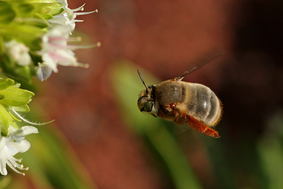 Nachdem ich die Fotos von Gisela Nagel hier eingestellt hatte, hat Rolf Nagel sein Archiv durchforstet und ebenfalls Fotos von Anthophora porphyrea aus einem früheren Jahr gefunden. In Haria im Norden von Lanzarote hat er am am 7.02. 2014 ein Männchen und am 11.02.2014 Männchen und Weibchen beim Blütenbesuch an Echium cf. decaisnei fotografiert. Herr Nagel hat mir freundlicherweise die nachfolgend gezeigten Fotos zur Präsentation überlassen. Seine eindrucksvollen Fotos von Bienen im Flug sind bei Flickr zu sehen.