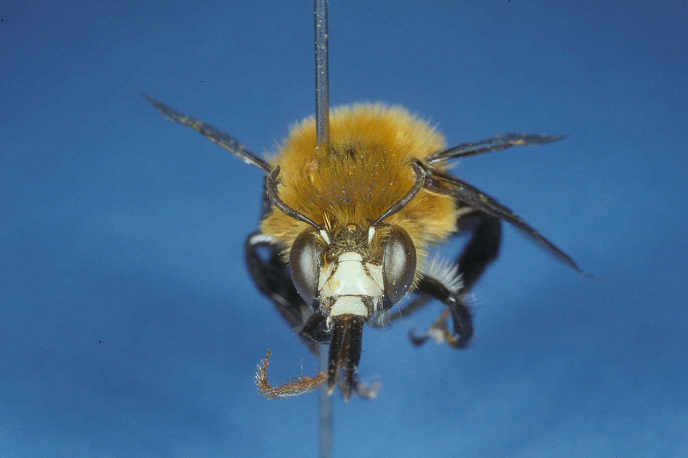 Rechts: Frontalansicht des Männchens von Anthophora purpuraria.