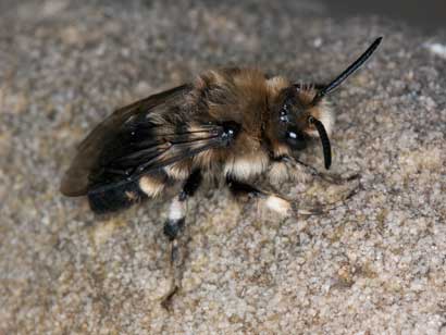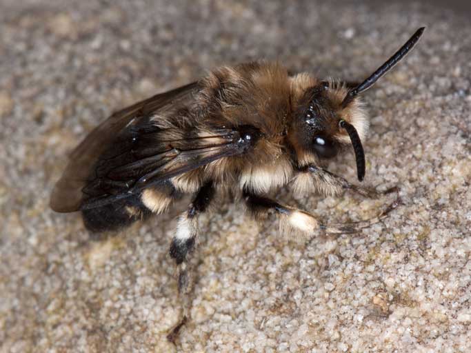 12–14 mm. Beide Geschlechter hellbraun behaart mit hellen Flecken.