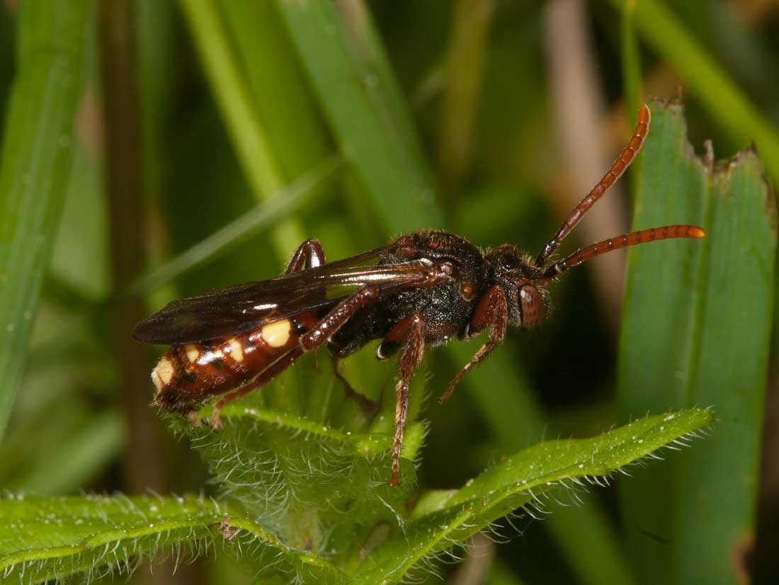 Der vermutlich einzige Wirt ist Andrena bucephala (Kocourek 1966, Perkins 1919, eigene Beobachtung)