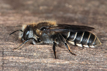 Tergite mit schmalen Endbinden, kurz behaart, schwarz und