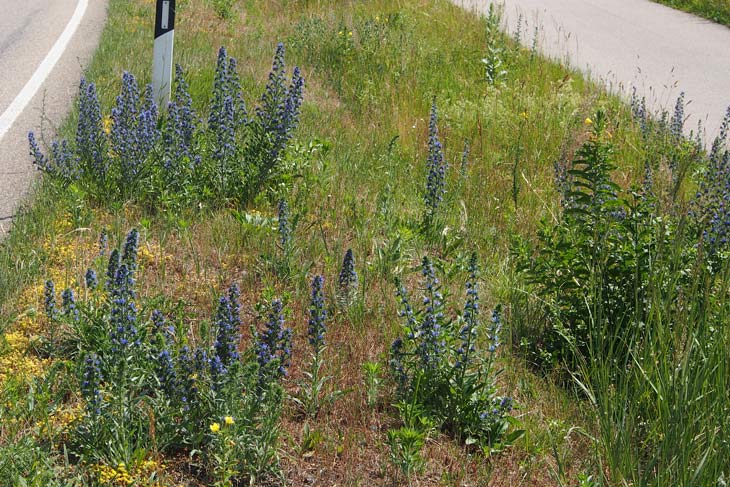 Auch Straßenränder können geeignete Wuchsorte des Natterkopfs sein (Oberrheinebene).