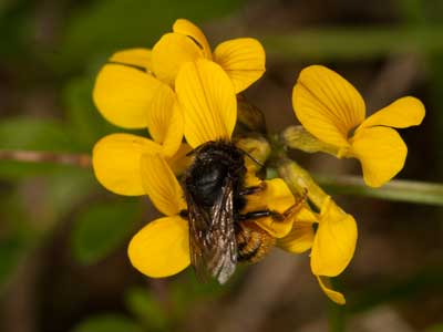 Dieses Weibchen sammelt Pollen am Hufeisenklee (Hippocrepis comosa).