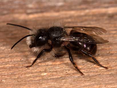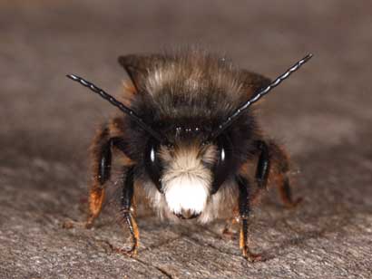 Hier kommt das Weibchen mit Pollen zurück, den es auf seinem Sammelflug in der Bauchbürste gespeichert hat.