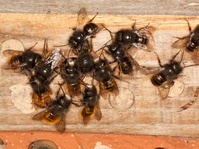 Nachdem der im Vorderdarm gespeicherte Nektar in der Brutzelle ausgespuckt und mit dem nach dem vorhergehenden Sammelflug abgeladenen Pollen vermengt wurde, kriecht das Weibchen rückwärts aus dem Gang, wenn dieser zu eng ist, um sich darin umzudrehen.