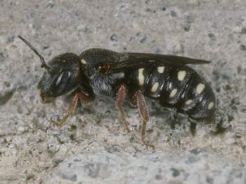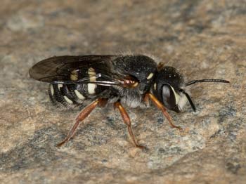 6–8mm. Dem Weibchen sehr ähnlich, aber zusätzlich Clypeus und Nebengesicht cremeweiss gefärbt (Val de Cogne, Italien).