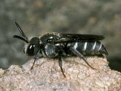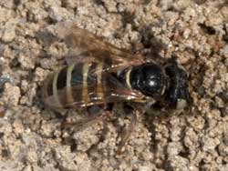 Ammobatoides abdominalis, Weibchen (Steppenglanzbienen). Bestand der Gattung in Deutschland erloschen.