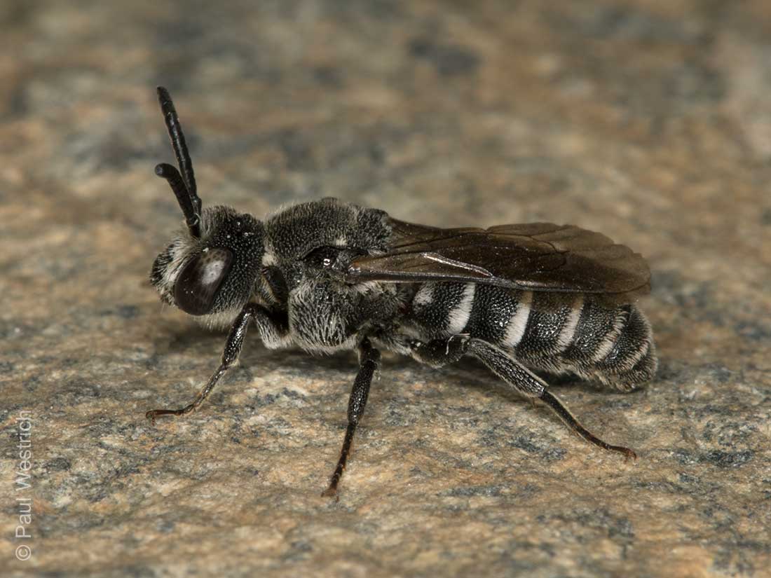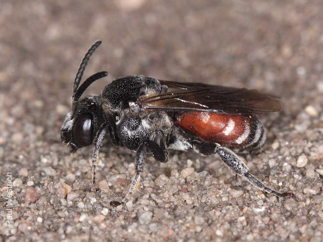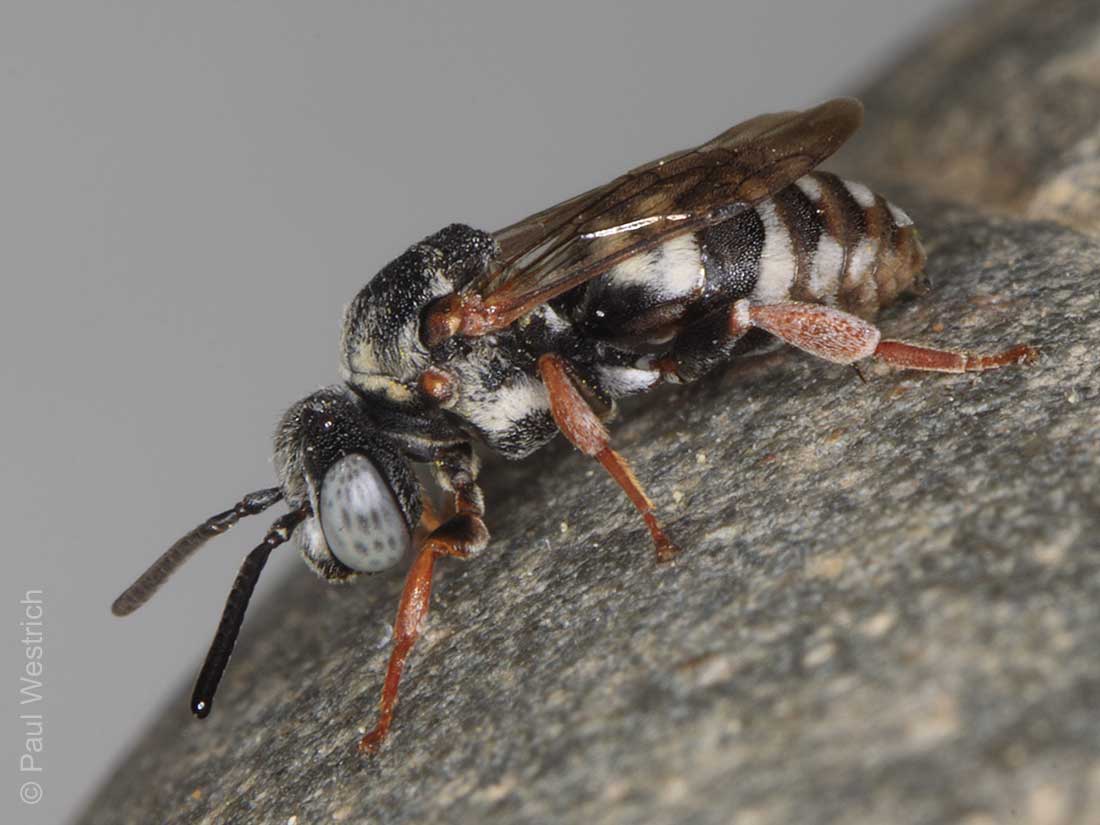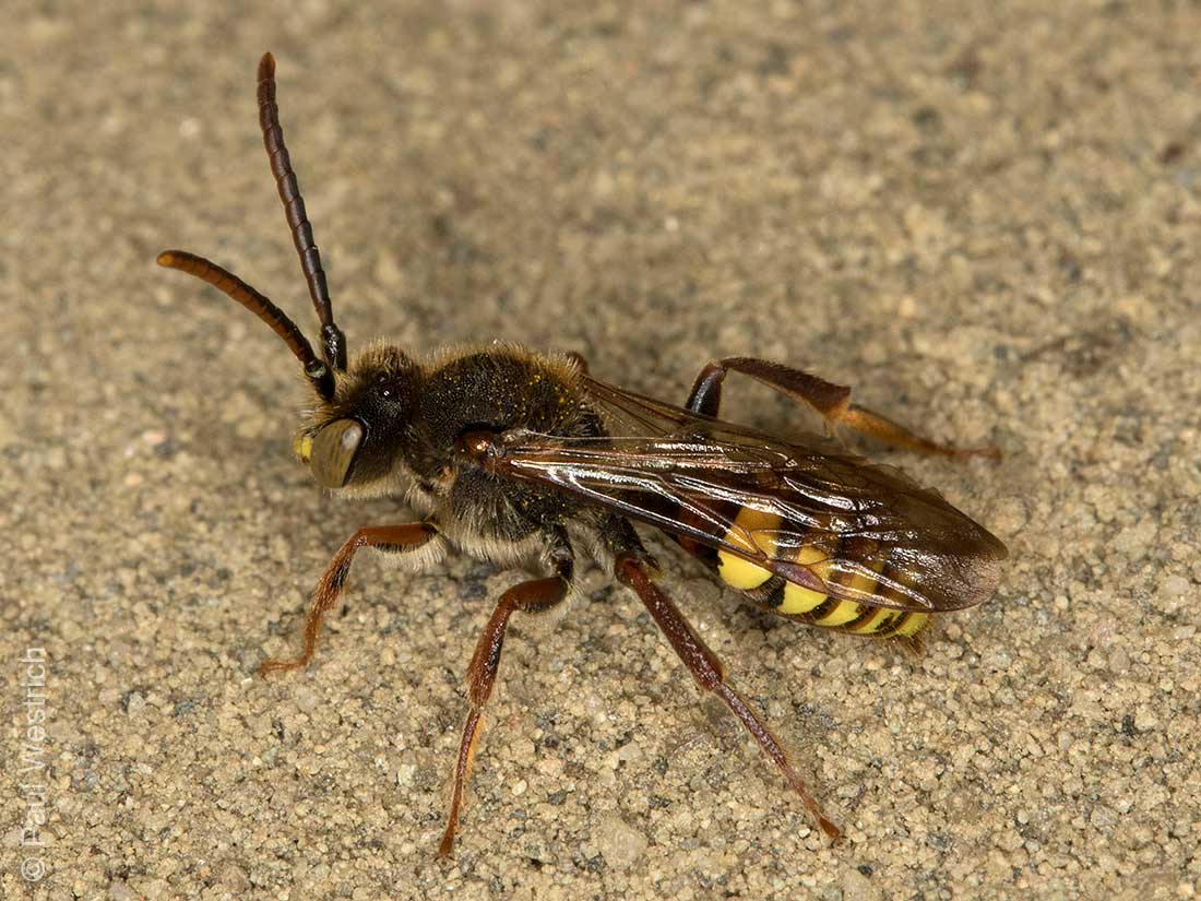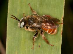 Ammobatoides , Männchen (Steppenglanzbienen) (Foto: A. Müller). Bestand der Gattung in Deutschland erloschen.
