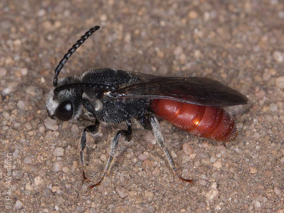 Melitturga clavicornis, Männchen (Schwebebienen). Bestand der Gattung in Deutschland erloschen.