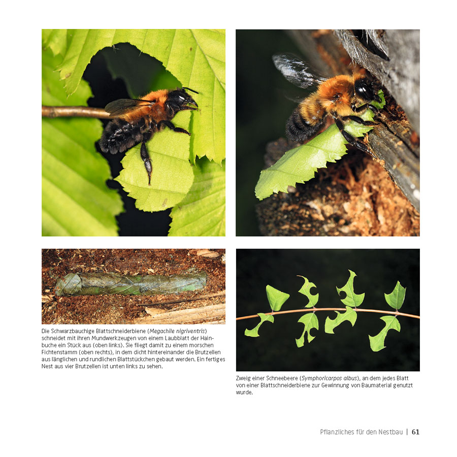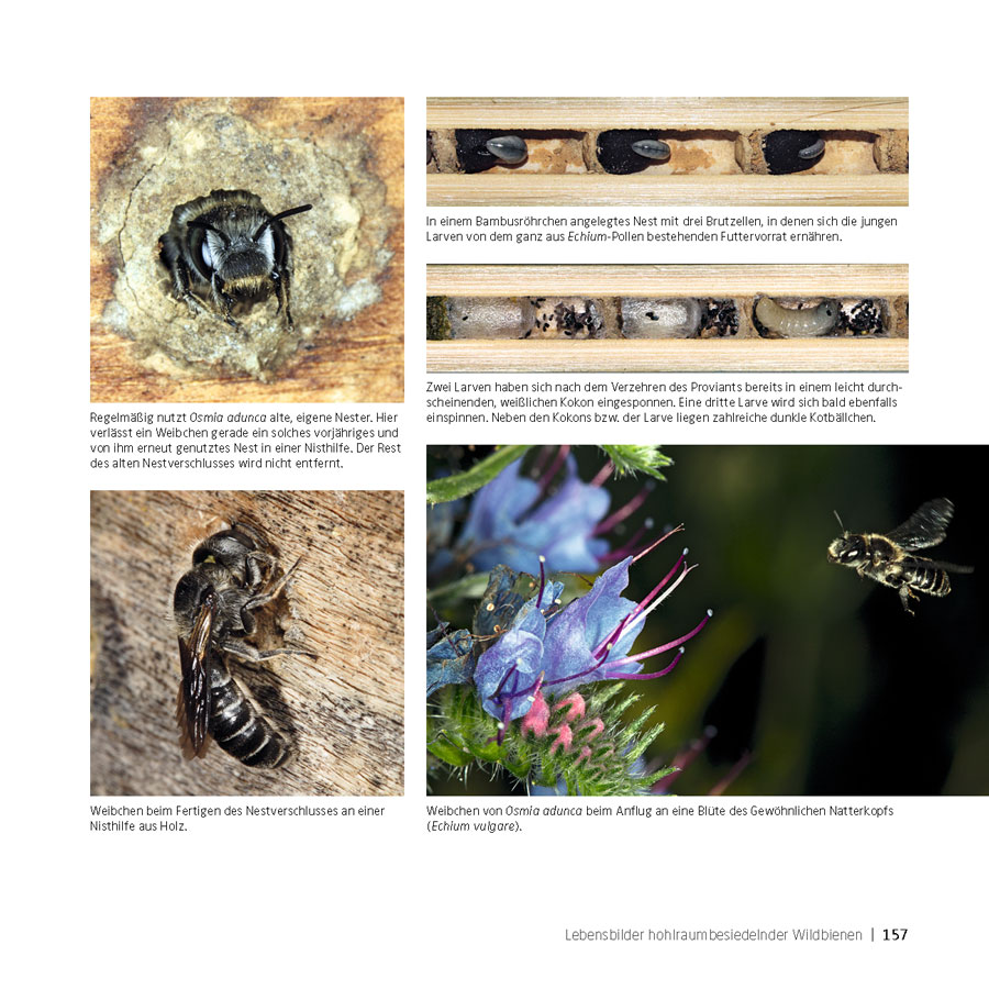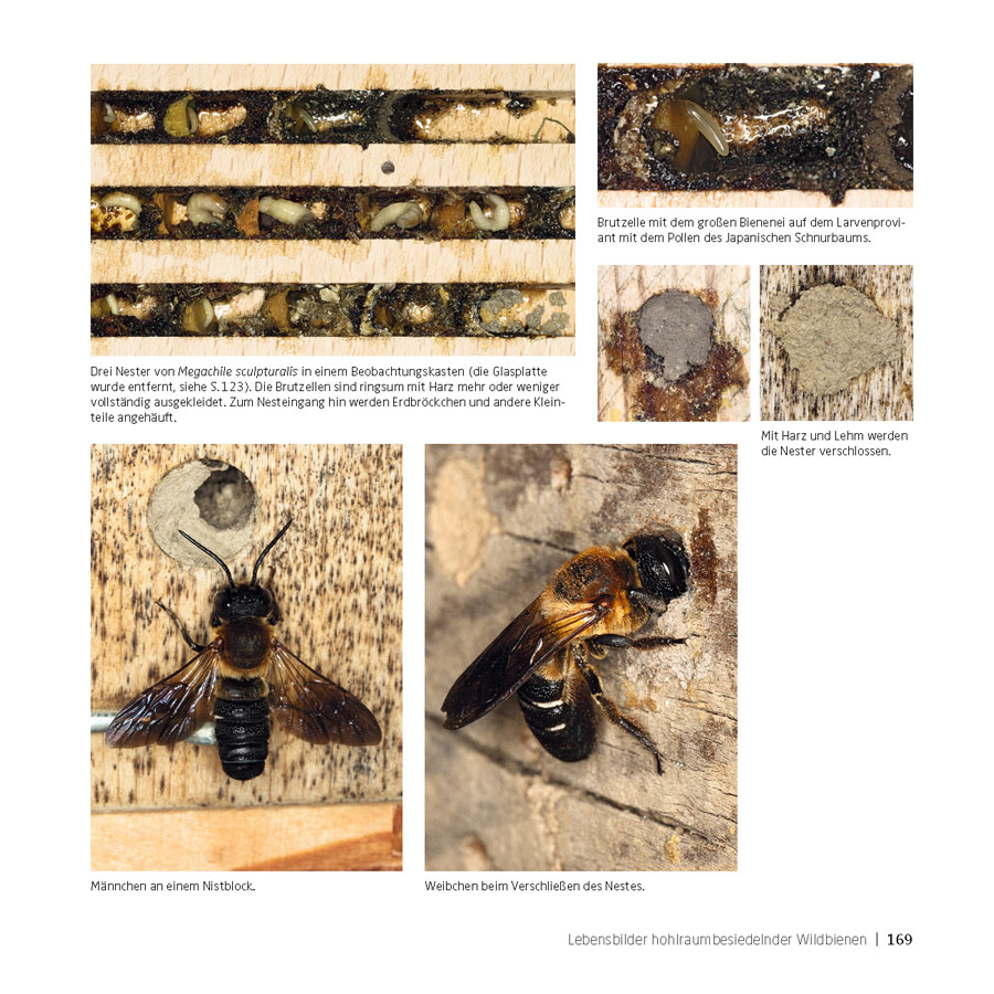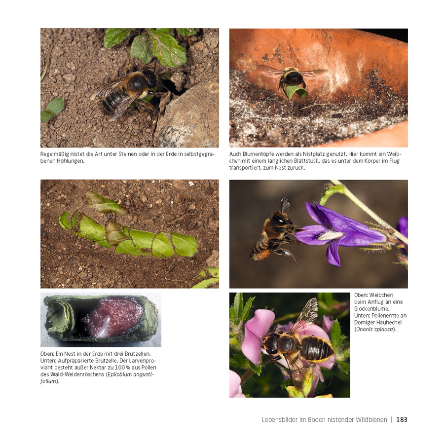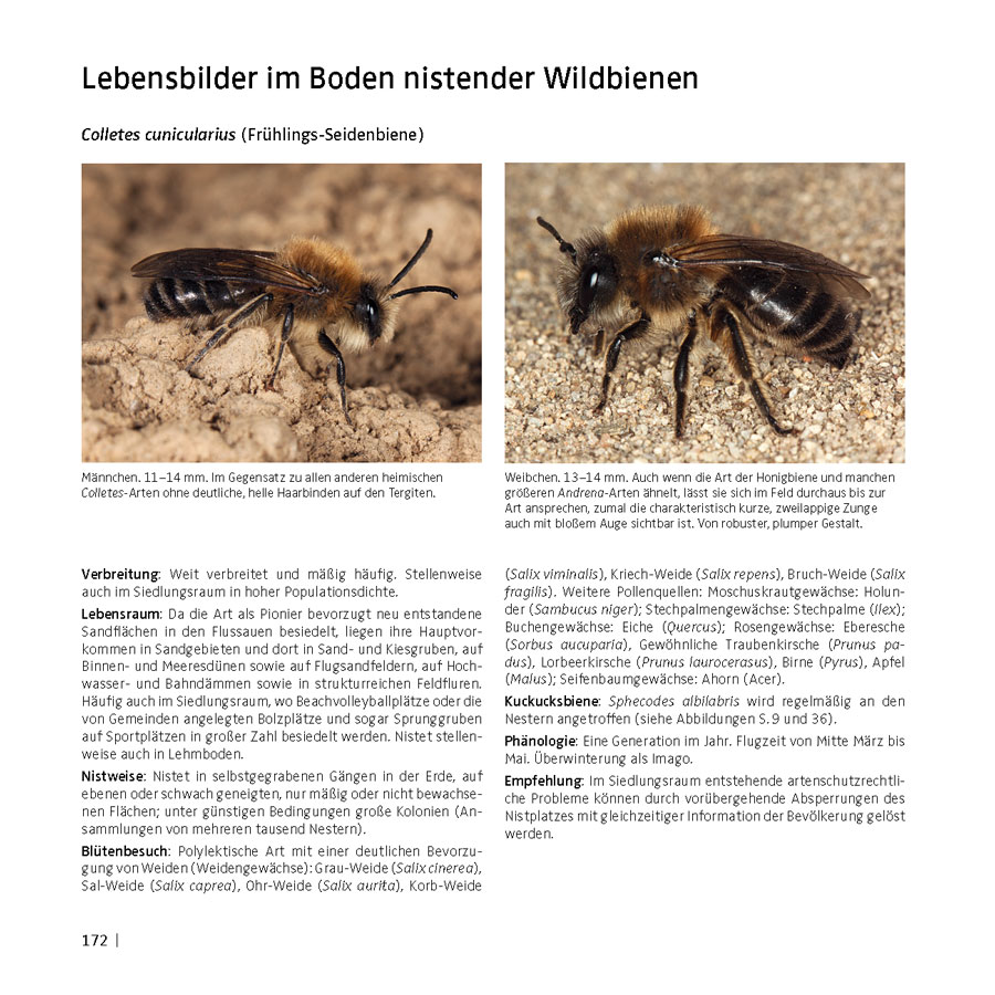 Dieses mit jetzt 653 Farbabbildungen noch reicher illustrierte Buch war erstmals 2011 erschienen und hatte bis 2015 insgesamt 5 Auflagen. Ich hatte dafür aus meinem reichen Fundus an Bildern, die auf zahllosen Exkursionen in die nähere und weitere Umgebung, auf Reisen in die Nachbarländer und in den Mittelmeerraum entstanden sind, die besten und schönsten Aufnahmen ausgewählt. Diese Bilder, die neben der Vielfalt der Formen und Farben auch einen tieferen Einblick in das Verhalten und die Lebensweisen der Wildbienen vermitteln, sollen Staunen erregen und für diese Insektengruppe begeistern. Der zweite Teil enthält viele praktische Empfehlungen zur Ansiedlung und Förderung von Wildbienen und verwandten Hautflüglern. Ausführliche Lebensbilder und Kurzbeschreibungen ermöglichen die Bestimmung typischer Besiedler von Nisthilfen und ihrer Gegenspieler und vieler weiterer in Gärten vorkommender und im Boden nistender Arten. Der ganze Inhalt wurde überarbeitet, teilweise neu geschrieben und mit 40 zusätzlichen Seiten und 174 neuen Fotos erweitert.