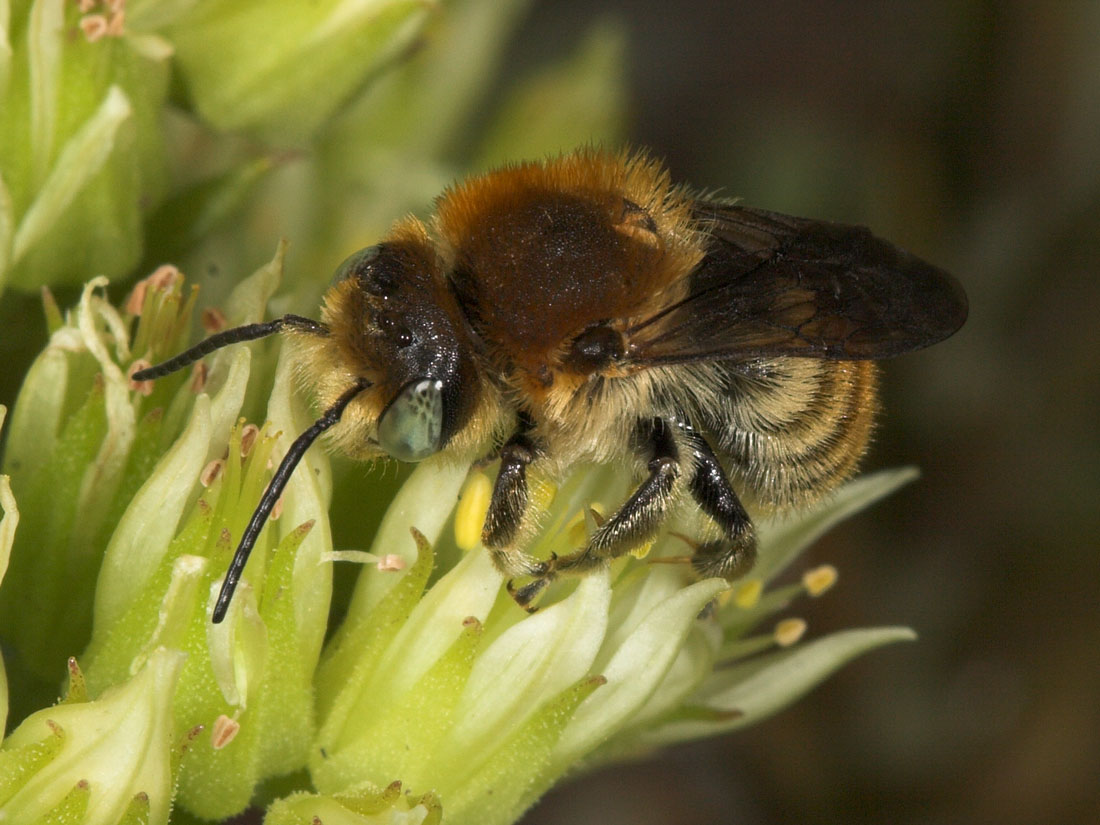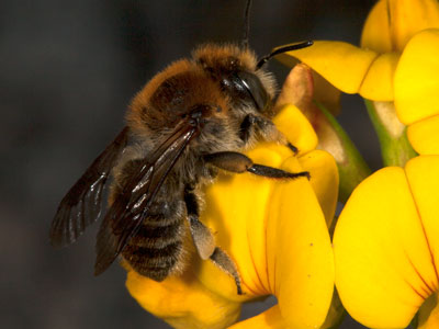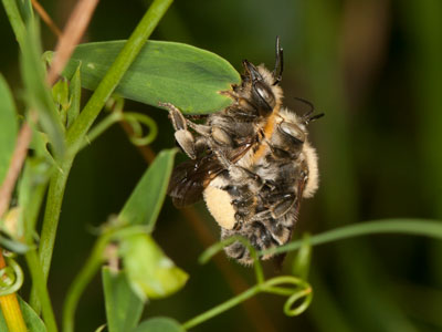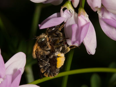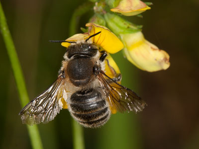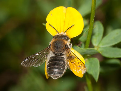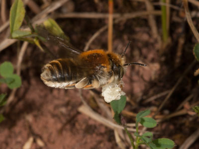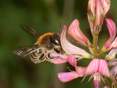 Ein Weibchen von Anthidium byssinum beim Blütenbesuch an der Futter-Esparsette (Onobrychis viciifolia).