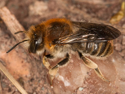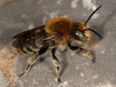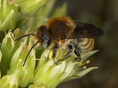 Anthidium byssinum, Weibchen in Frontalansicht.
