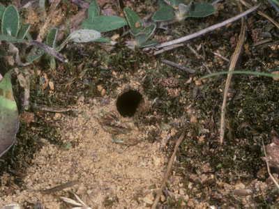 Im rechten Teil des Bildes befindet sich ein Nistplatz von Anthidium byssinum. Die Nester wurden hier an kleinen, lückigen Stellen der Grasnarbe angelegt.