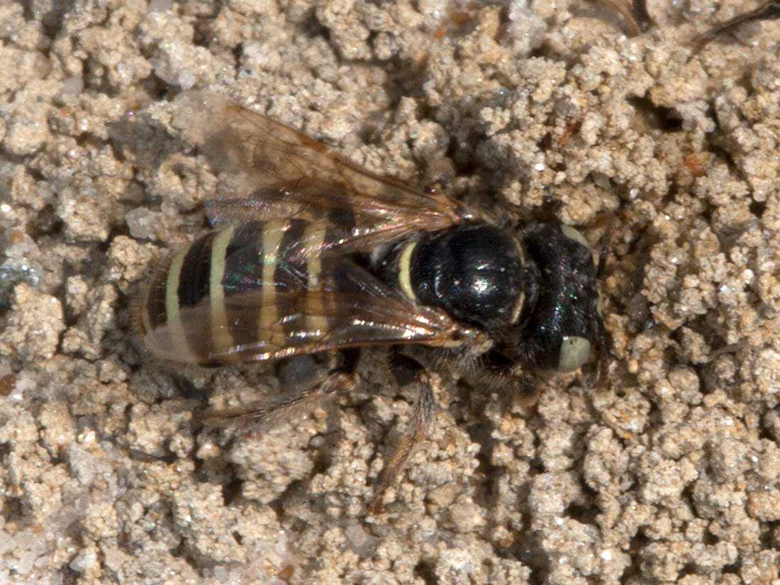 9–10 mm. Durch den glatten, gelbbandierten Hinterleib kann man beide Geschlechter gut der Gattung der Buntbienen zuordnen. Das Weibchen ist kurz und dicht, das Männchen lang und dicht gelbbraun behaart. Bei letzterem sind die Fühler rostrot. Neben der charakteristischen Färbung ist auch der spezielle Blütenbesuch hilfreich für die Bestimmung. Zur nächstverwandten Art Camptopoeum frontale siehe den Gattungssteckbrief.