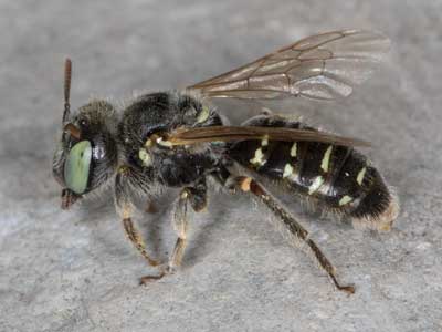 Frisch geschlüpfte Männchen von Camptopoeum friesei am Nistplatz (Neusiedlersee, Österreich). [Für Großansicht auf Bild klicken]