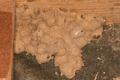 Das folgende Video (48 sec, 2 MB) zeigt zunächst ein Männchen, das sich putzt und wegläuft, und dann ein Weibchen beim Verschließen des Nestes mit Lehm.