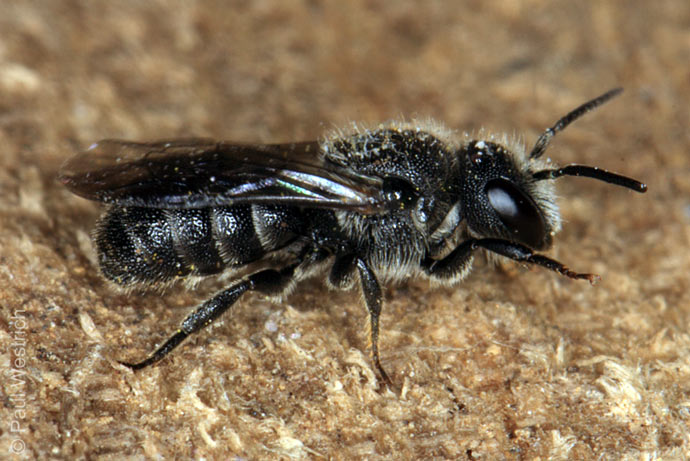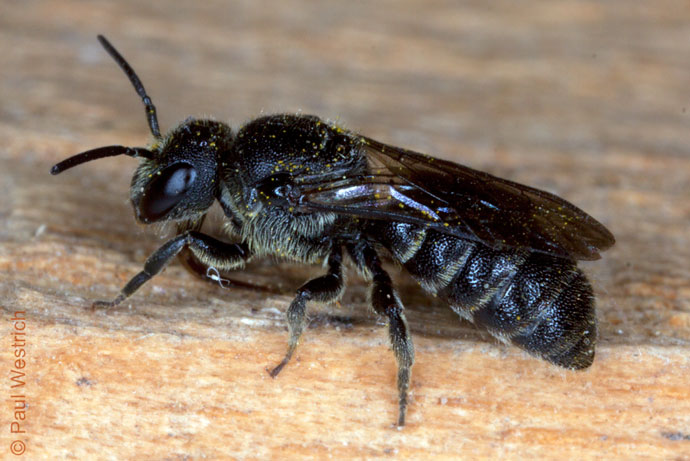 mit lockeren Haarfransen. Die Männchen sind meist sehr klein. Sie ähneln den Männchen von Osmia truncorum. Dieses Tier ist etwas »verstaubt« durch das oftmalige Hineinkriechen in die Nester des Wirtes, aus denen vielleicht bald ein Weibchen schlüpft.