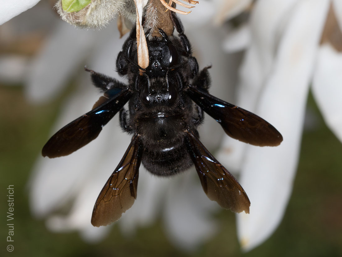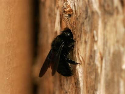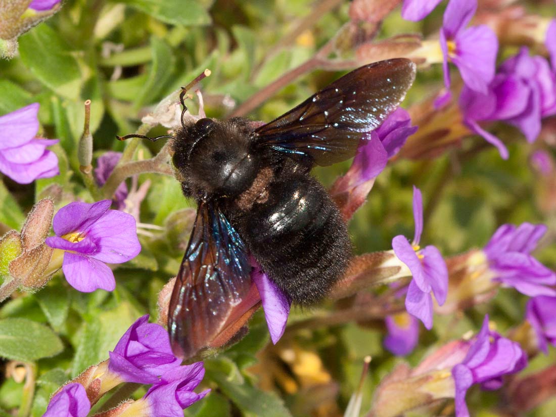 Regelmäßig erhalte ich Meldungen über vermeintliche Beobachtungen der Schwarzen Mörtelbiene (Megachile parietina) aus Regionen Deutschlands, in denen diese Art aktuell gar nicht vorkommt. Soweit mir die Fernbestimmung aufgrund der Beschreibung oder durch Fotos möglich war, hat es sich bisher stets um Holzbienen gehandelt, die zwar ebenfalls schwarz sind wie die Weibchen der Mörtelbiene, aber deutlich größer und mit einer völlig anderen Nistweise.