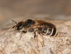 Ammobatoides abdominalis, Weibchen (Steppenglanzbienen). Bestand der Gattung in Deutschland erloschen.