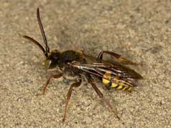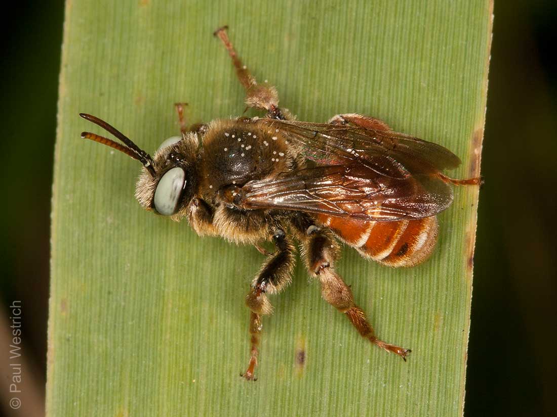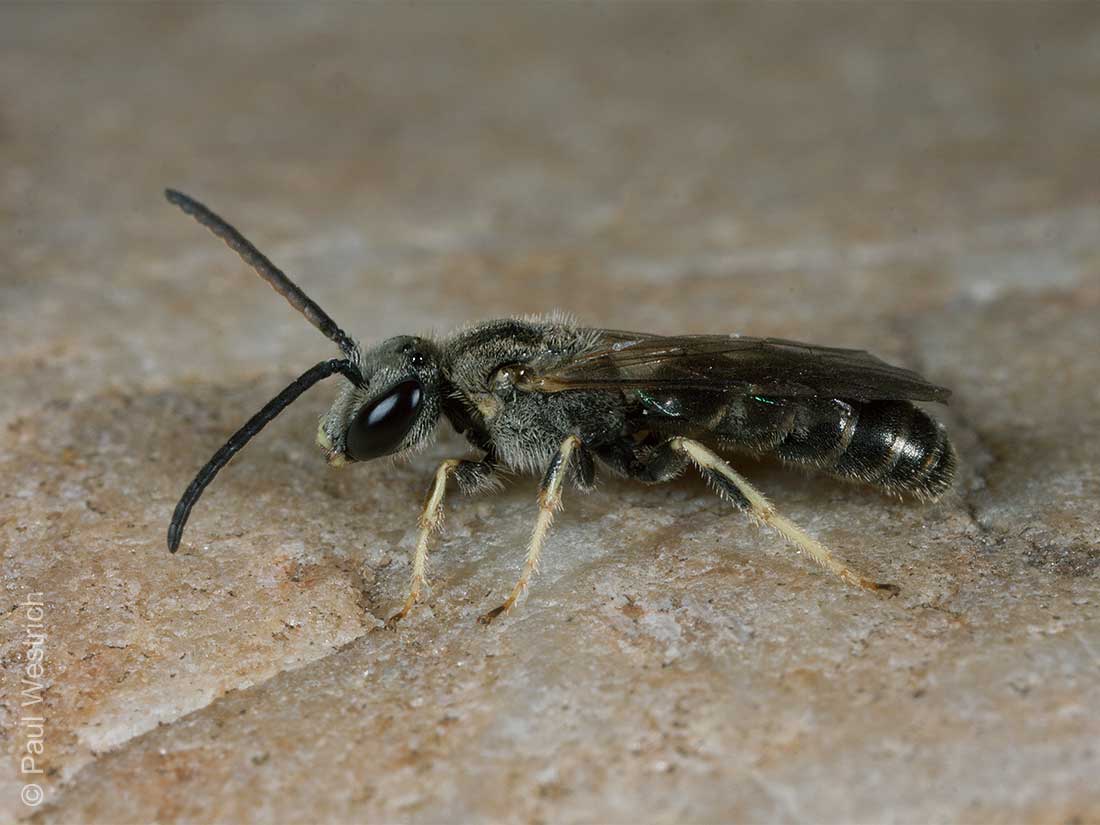 Ammobatoides , Männchen (Steppenglanzbienen) (Foto: A. Müller). Bestand der Gattung in Deutschland erloschen.